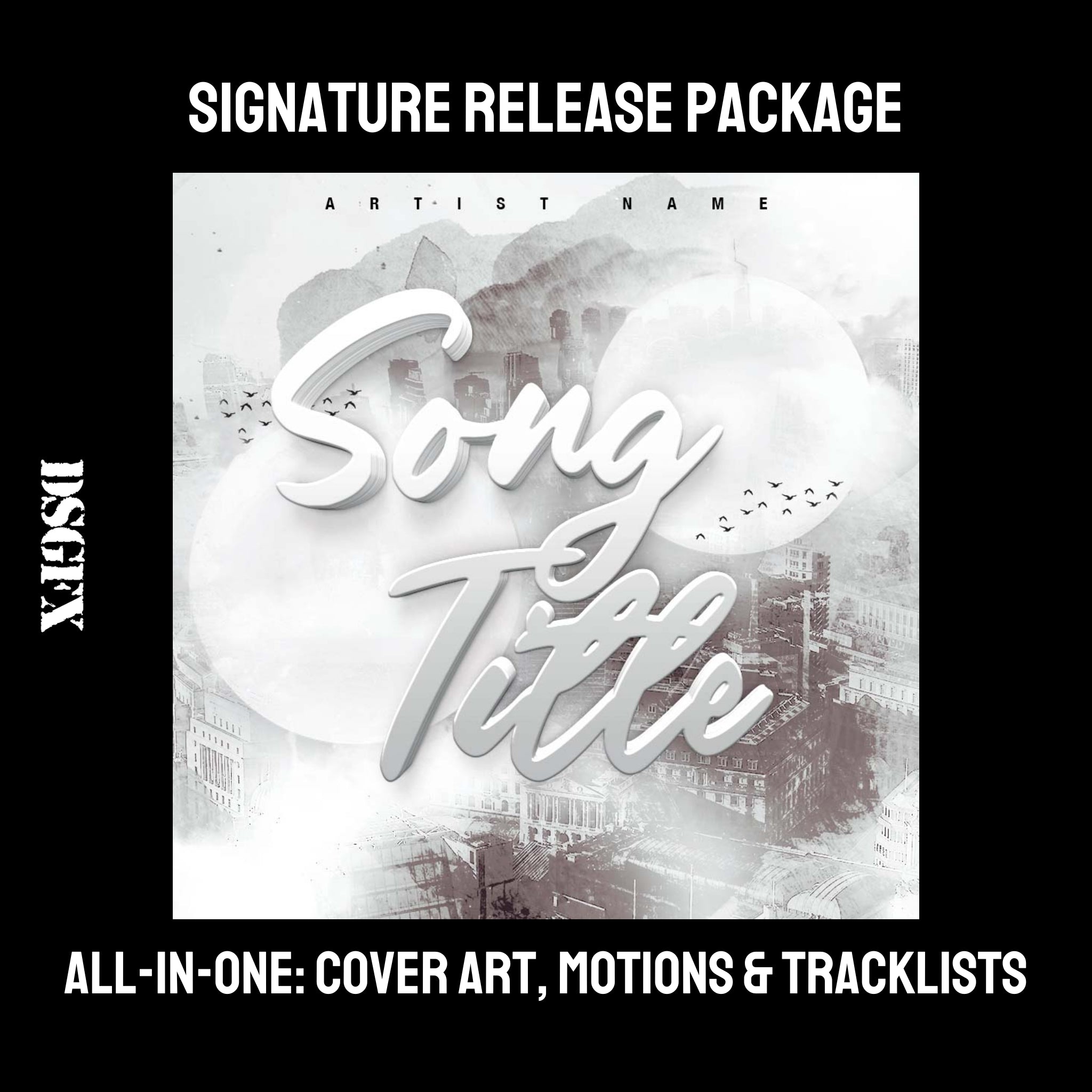 A DSGFX signature cover art music release package provides you with a premium package that gives your single or album campaign the exact impression that you are looking to make.