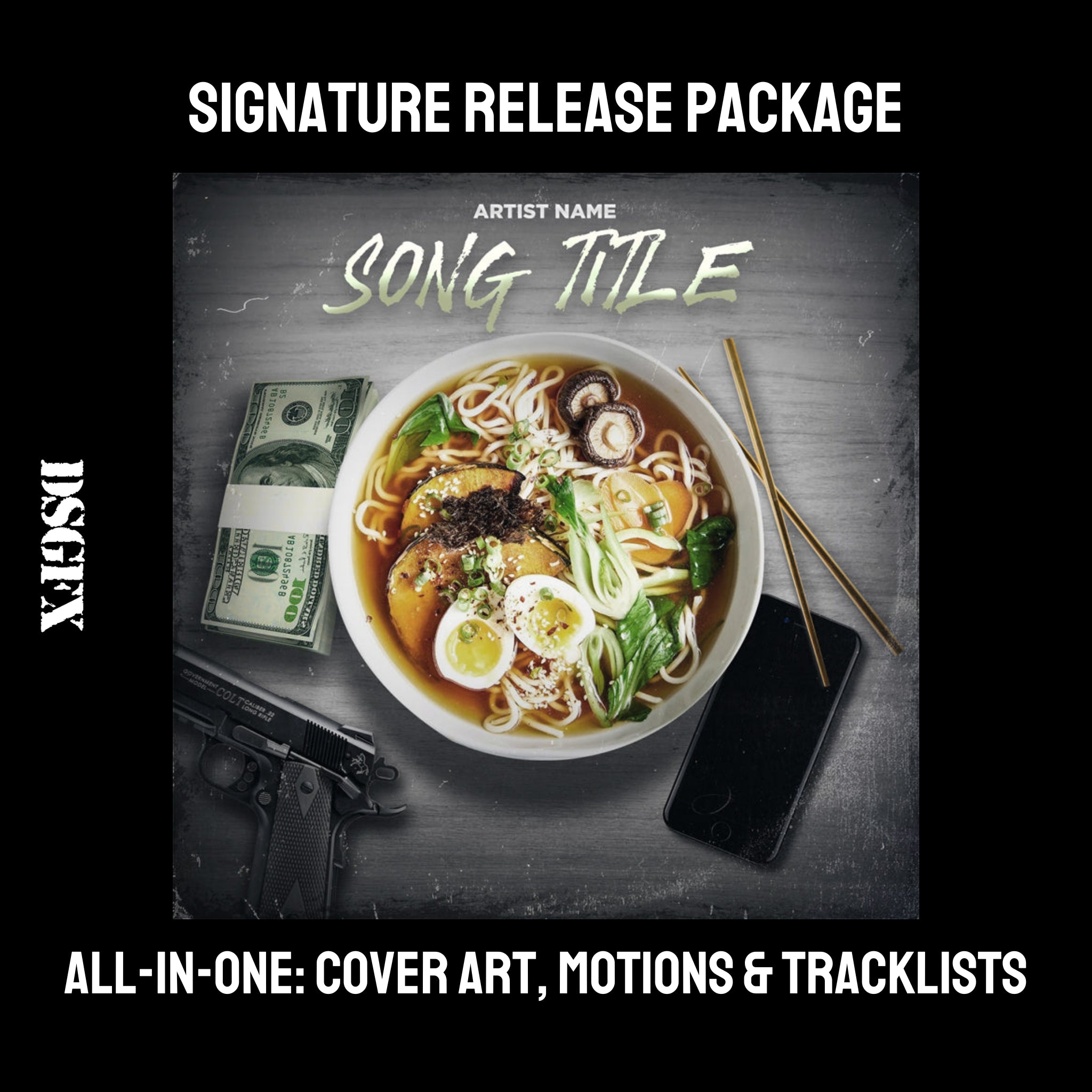 A DSGFX signature cover art music release package provides you with a premium package that gives your single or album campaign the exact impression that you are looking to make.