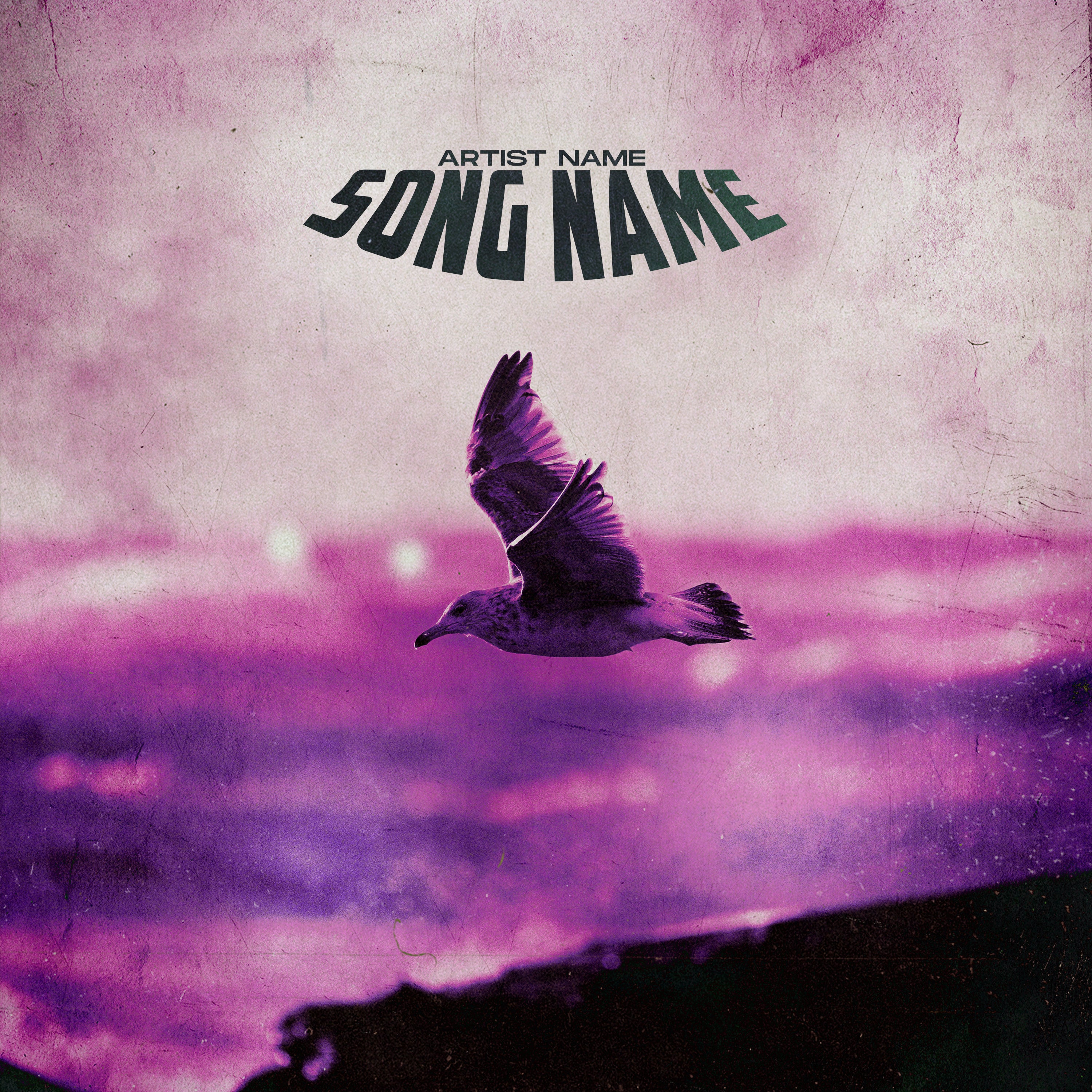 This dynamic and mystically themed album artwork features a solitary bird in mid-flight against a dramatically textured purple and pink backdrop, evoking a sense of freedom and transcendence ideal for alternative, indie, or psychedelic artists looking to express depth and introspection in their music.