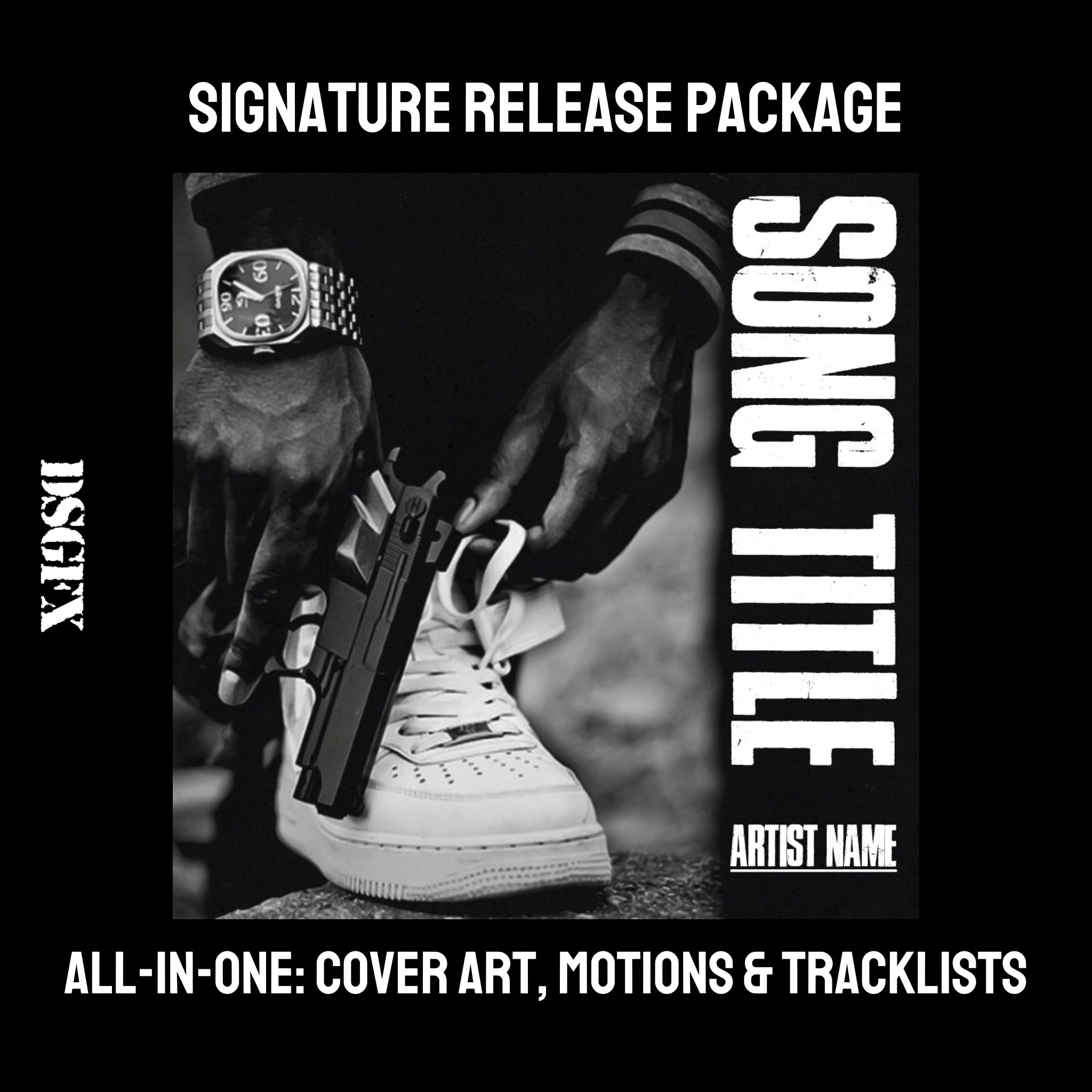 A DSGFX signature cover art music release package provides you with a premium package that gives your single or album campaign the exact impression that you are looking to make.