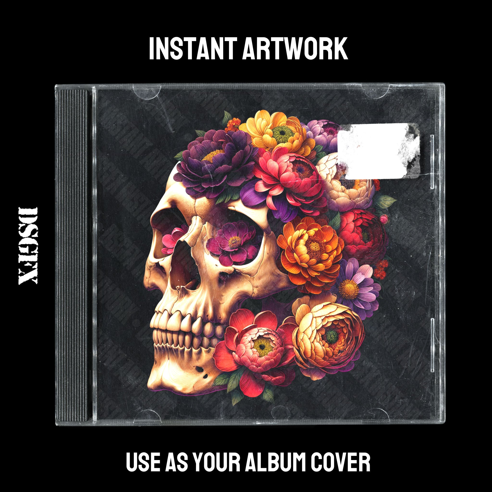 This artwork features a human skull adorned with a vibrant bouquet of flowers, boasting a striking contrast between the macabre and the beautiful. The intricacies of the floral arrangement suggest themes of rebirth and mortality, making it a compelling visual metaphor for artists who explore deeper, often contemplative themes in their music. With its rich hues and evocative imagery, this piece is suited for edgy rock bands, introspective rappers, and soulful R&B singers looking to create a lasting impression.