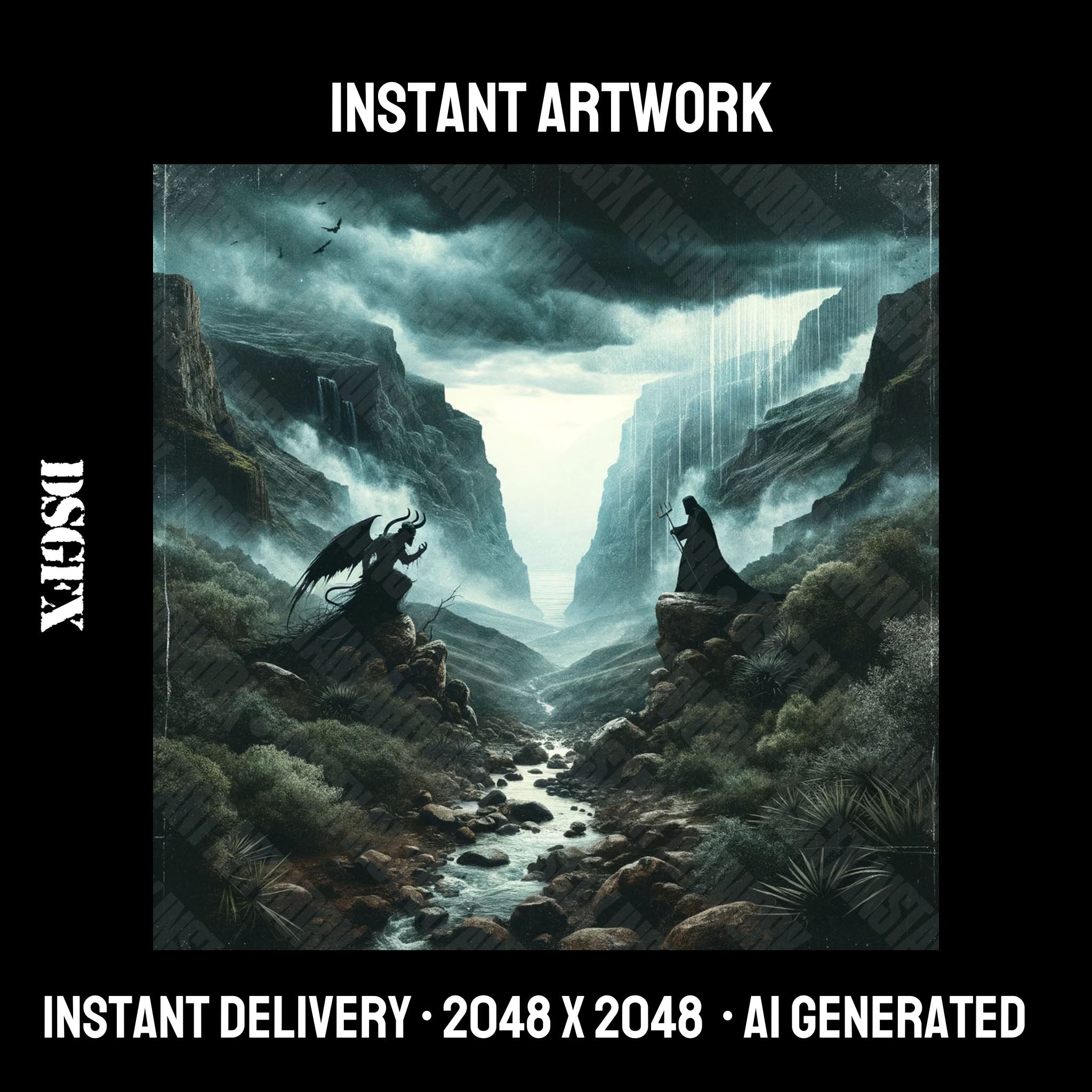 Instant artwork is AI generated artwork generated and curated by Dontsleepgfx. You can use artwork for your music, merchandise and any commercial use case outlined in our terms.