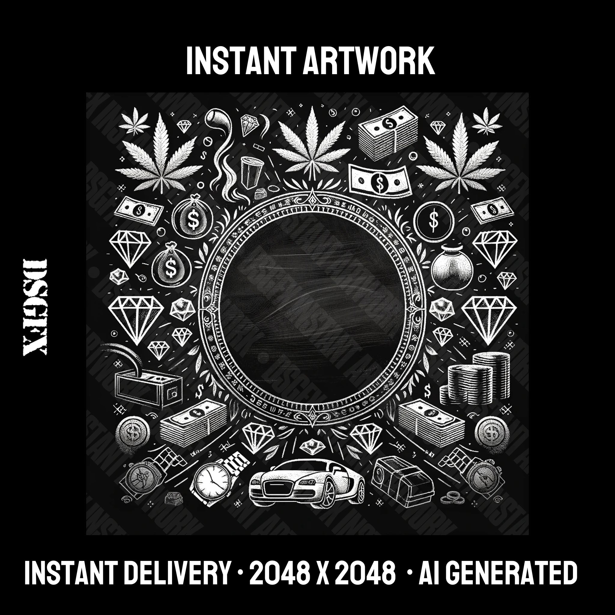 Artwork can be used for music, merchandise, and website. This art is generated by Dalle-3. Edited & upscaled by DSGFX.