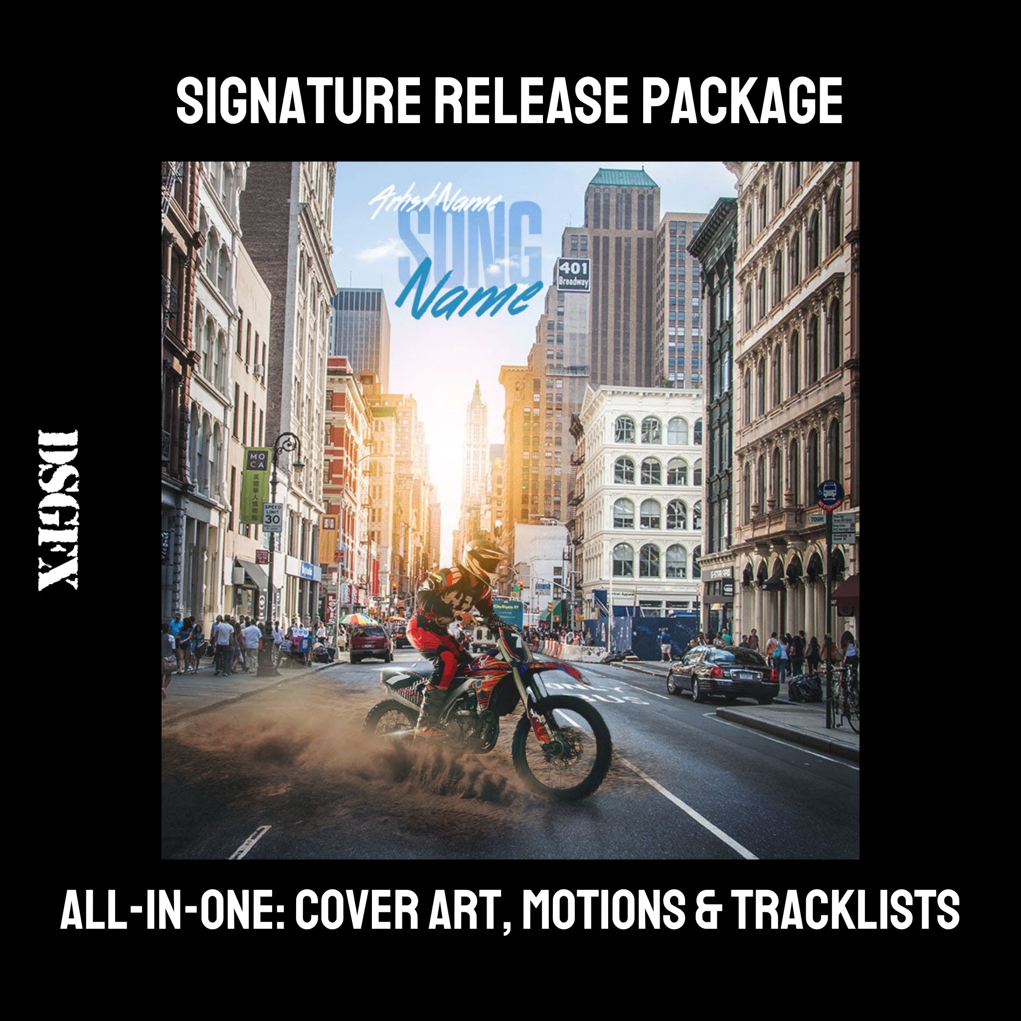 A DSGFX signature cover art music release package provides you with a premium package that gives your single or album campaign the exact impression that you are looking to make.