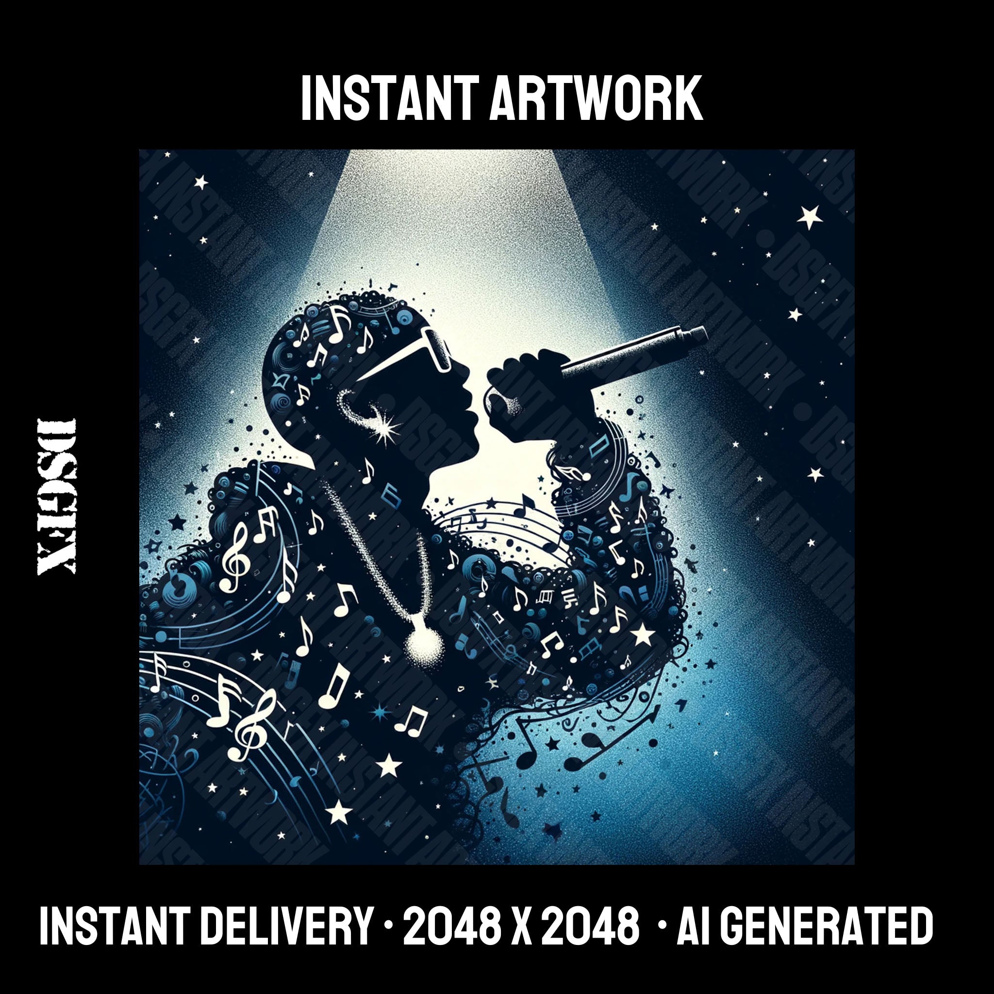 Artwork can be used for music, merchandise, and website. This art is generated by Dalle-3. Edited & upscaled by DSGFX.